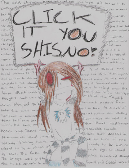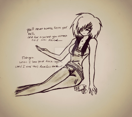 This is Bleed being all dramatic while looking out the window. If any of you have seen the music video So Alone by Anna Blue she might look a little familiar. I thought those two shots of her were very pretty in the video so I drew them. Blah talking.
