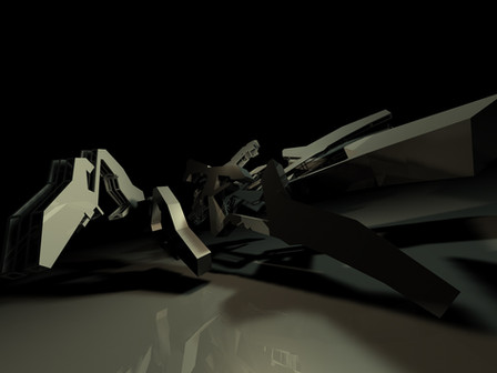 I like this, but I think there's room for development. Would be cool to see those abstract/sci-fi shapes on the right (2D) on a page and maybe have some of them extruding or becoming 3D.... Just a thought It's what it looks like it's already trying to do.