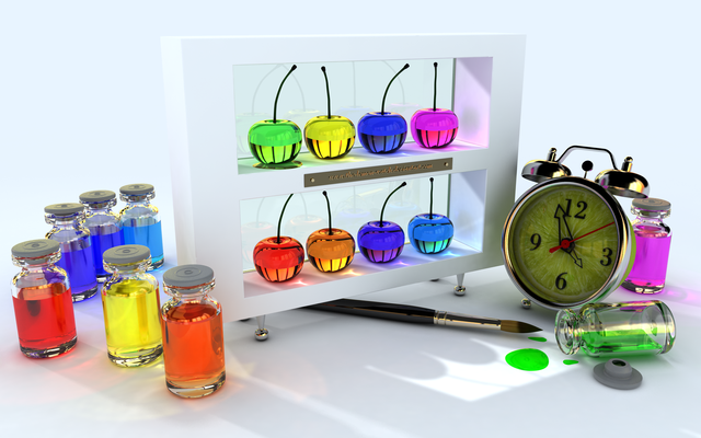 oh.. I like this one.... very well done... the patterns on the umbrellas is nice. however the scene feels very packed.... the machine seems to large and chunky.. but really nice idea!