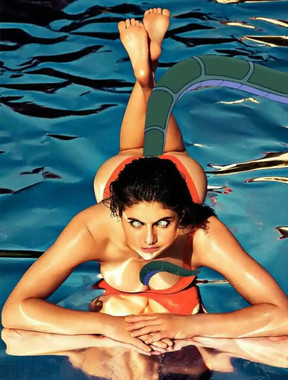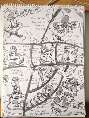 The first panel of the comic 'Poolside Python', feat. Kaa and Juno Temple.Related content