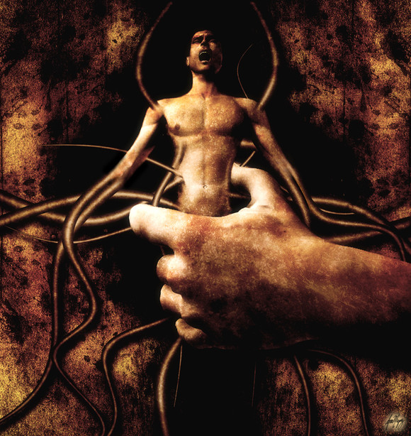 I know i've got the wrong idea of what it represents but when i first looked at it, my overall impression was that this woman was looking for revange. And then i realized that she has been harrassed ( i don't know if is that the word I'm looking for....but what can i do, my English sux ) somehow and that was why she put herself together, got stronger... and now she's planning the revange. look her eye, there is some madness, some evil thing...