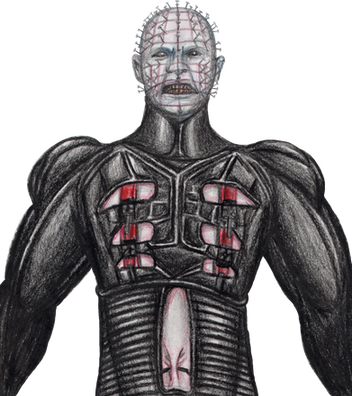 An avid servant of Pinhead, dedicated to exploring the limits of human sensations. His face was severely disfigured. His lips were peeled back to expose his teeth, which he clicks together to communicate. Leather suit displaying his rites of extreme scarification. And the vicious hook & chain he wields with violence and satisfaction.Chatterer from Dead by Daylight - CHAPTER XXI: Hellraiser™.