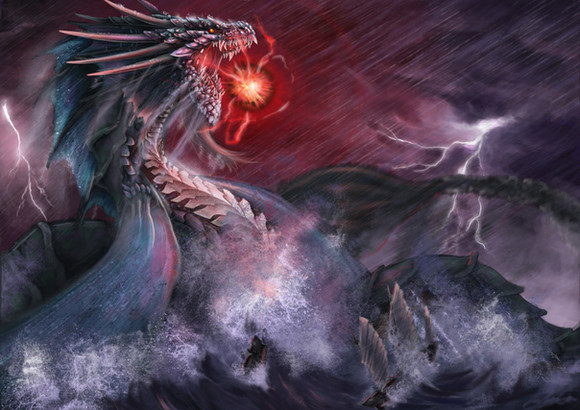 Ahh I love how dramatic this piece is, my favorite part is the water dripping down the dragon's scales *o* <3