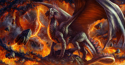 Stunning and breathtaking, i could definitely see this as a scene in a movie or comic with a protagonist fighting this horridly and magestic beast. The coloring and atmosphere are shockingly great and too good for words. You are definitely getting my watch. FAV