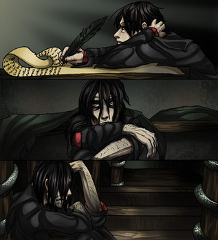 Ok - wow dark. And in diffrent styles than you usualy use. I really like it. It want me to have this on my wall - it would fit with my wall color. You're man of many talents (well drawing and paiting at least).