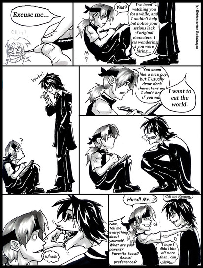 It's just a spark, a spark that I see in you, it's harder to read with that angry expression on your face. Imaginative, serious, you seem like a patient man, yet.. you're not the comedian we ought to know in your works. You... (GAAAAAAAH! LACK FOR WORDS,again, drat.) actually seem devoted to whatever you do. And I see kindness in you, a sweet type of person, I also see optimism. Aaaaand.... there's something uncanny about that stare of yours, sends chills my back.
