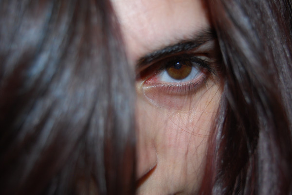 *tilts head a bit* Looking at your eye(or eyes, whatever) I get a warm sort of feeling, and it looks deep. I actually don't really know how to explain the last little bit all that well....all I can think of is deep, there just seems to be a lot to your eye. Nice picture either way, if you shrunk it, it would be a good icon or stamp.