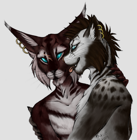 I dig it. :3 Love the passively suggestive expressions. Very cute, very interesting. But my favorite part is probably the details in their faces. Wielder looks like a wolf, Skye looks like a saluki. You can totally see the difference.