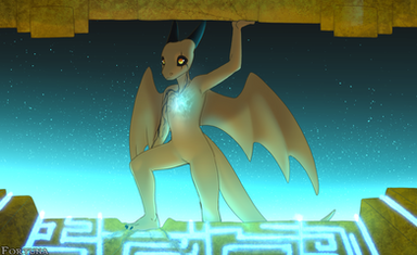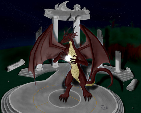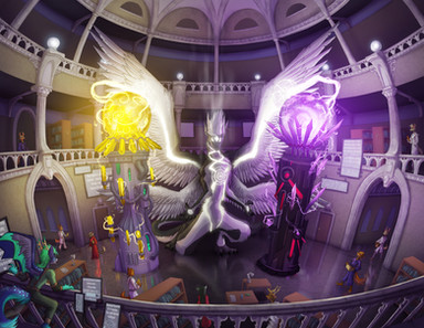 ...for some reason I keep thinking that the crystal and beam of light is part of the background (like the columns are) and not in the center of the scene. Very nice work though.