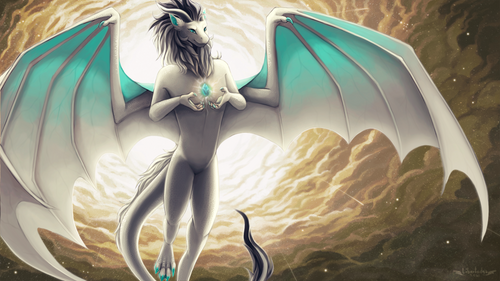 A commission for bottlenose of his character White Dragon, on a spiritual journey to gain insights from the cosmos.Done with acrylic paints on 11"x14" illustration board.