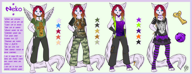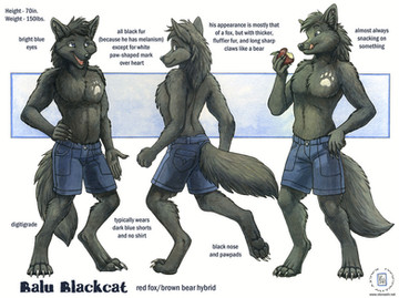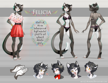 A character reference sheet for Nikki Blackcat, who belongs to tobi3b.Done with micron pen, acrylic paints and a little watercolor for the background - on 9"x12" illustration board. Text added digitally in Photoshop.
