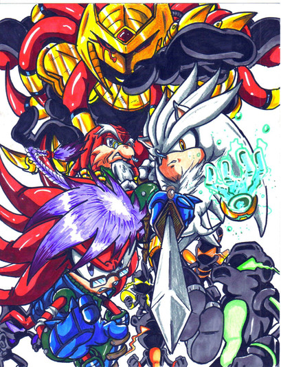 The part at the bottom where you see Sonic doing what was supposed to look like him kicking Enerjak's mask is supposed to symbolize how Sonic defeated Enerjak and freed Knuckles from the evil powers that constricted his mind!It didn't turn out right but that's why they call it a planning sheet!