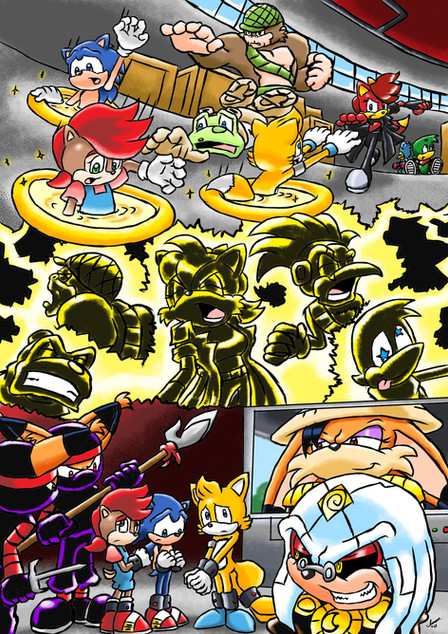 The whole thing is based after the latest issue of the Sonic the Hedgehog Comics,#184. It took forever to do (about 6 hours rolled over to the next day) Now...This is basically a summarization of every thing going on with Enerjak and Dr.Finitevus (among other things) over the past few months.