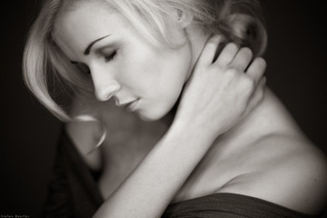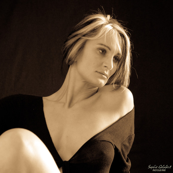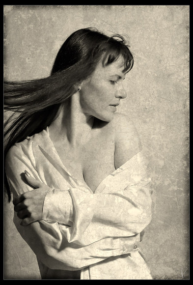 Nice composition. I love the sepia colour tone and the expression on the models face.