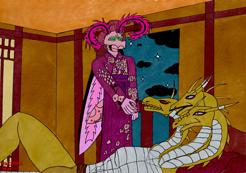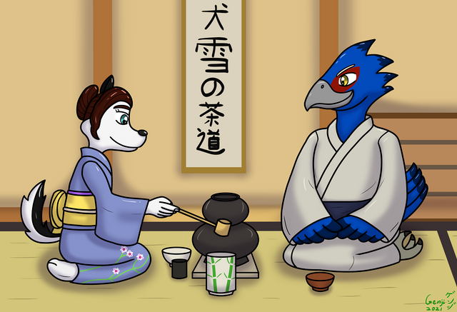#2022 #anthro #bowl #cushion #dojo #dragon #drawing #furry #geisha #japanese #lepidopteran #male #moth #oc #reptile #scalie #original_character #digital_art #kaejaris #art