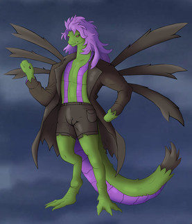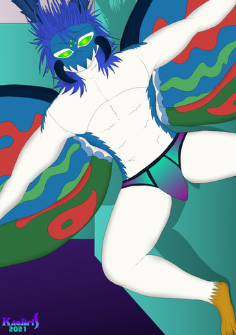 #2021 #anthro #briefs #dragon #drawing #goatee #hybrid #long_hair #male #mullet #oc #reptile #scalie #underwear #original_character #digital_art #white_hair #yellow_eyes #green_skin #kaejaris #art