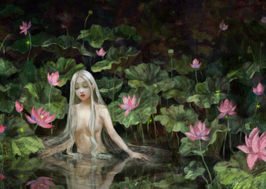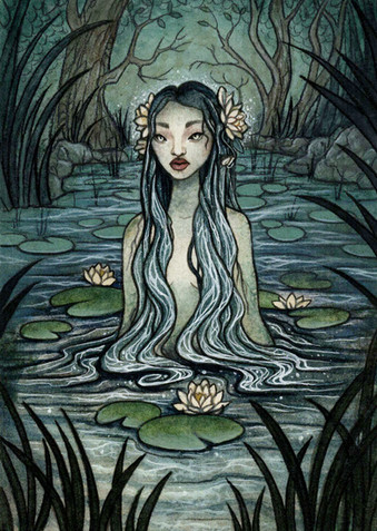 #blue #fantasyart #glowing #illustration #mythical #nymph #underwater #watercolour #whitehair #woman #fantasyillustration #longhair