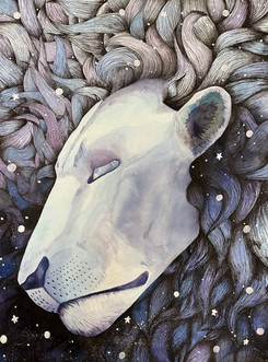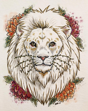 #fantasyart #glowing #lion #mythic #sunflowers #watercolour