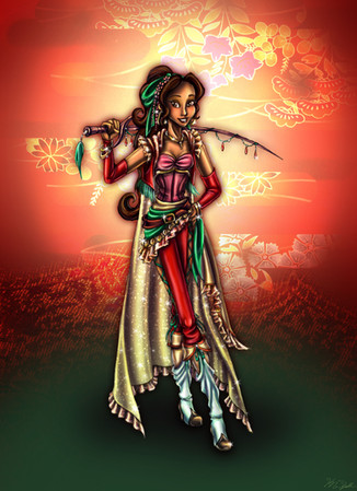 蛇 含丽A recent new character for my story. Featuring here is She Han-Li, a huntress who teams up with the main character to try to find her mother's friend, who vanish 25 years prior. She is a fast and powerful fighter that can strike as quick as a cobra, with strong sword fighting skills and martial arts fighting techniques.