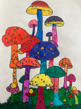 The assignment was to break a drawing up into six rows, each with their own color scheme, like two hues plus their shades/tones, all analogous, complimentary, etc.