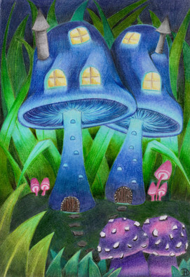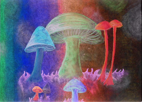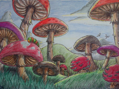 I got new colored pencils. They're like coloring with silk.Mushrooms are so easy to take liberties with.