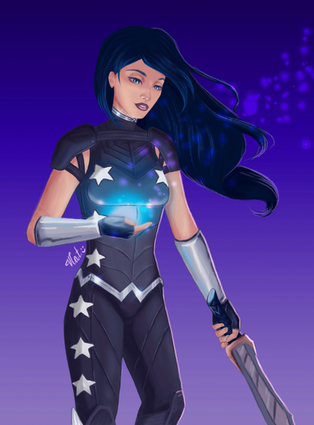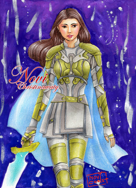 She looks amazing. I especially love the detailing on her sword and armour, especially how you shaded the gold parts.