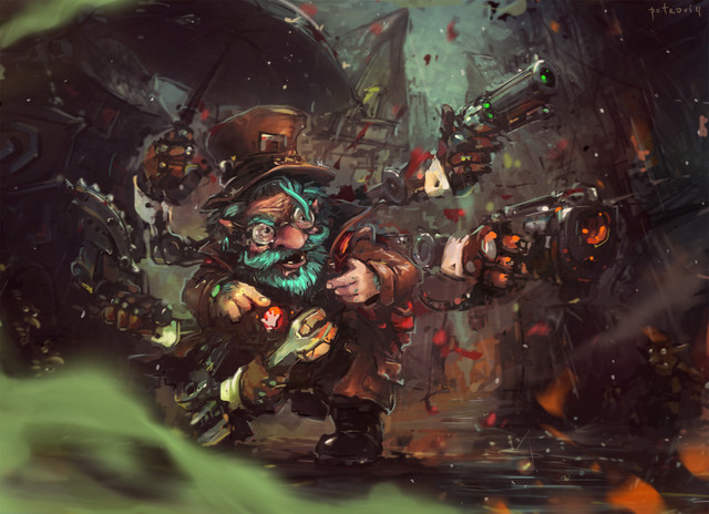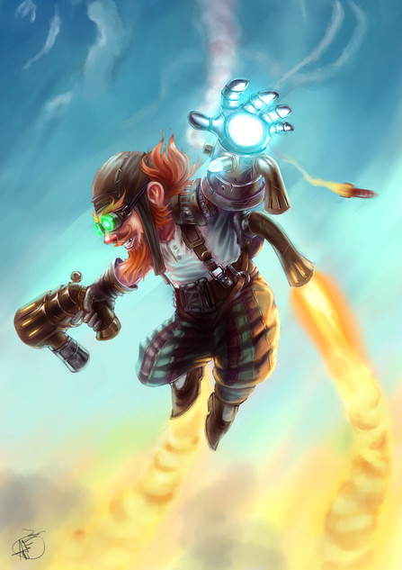 Gnome with his mischievous invention.I decided to create a dynamic composition and use steampunk inspiration as it fits best for Gnomes. It was a great fun to draw it and I'm happy with the result.