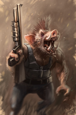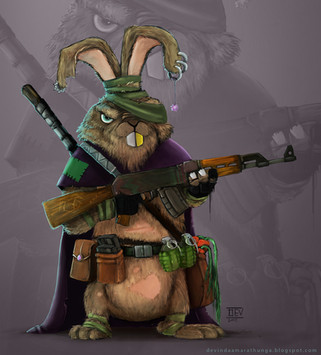 Your colors/shades are fantastic and your style's good. Whatever brushes you use make a good texture and anger and sadness really pass through it, you almost make those rabbits real