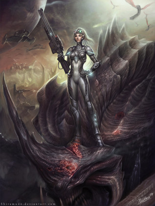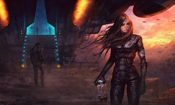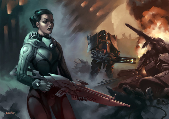 Amazing artwork. It is funny because I had a plan of doing some kinda similar stuff with a female warrior and war machines all around. You gave a great mood to this painting