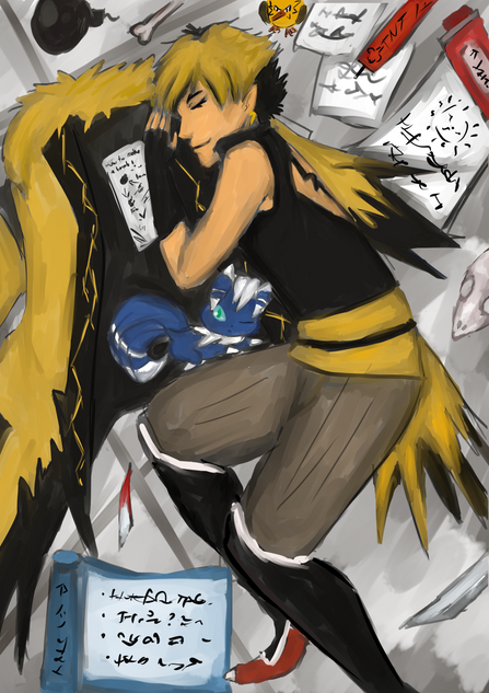 Lucky for him, when he was running from cops one he meet one of his friends from school. He offers him a place to stay, and so on he stayed at arcanine place.He had with him a "friend with benefit relationship". Hiro was owner of gun shop, was because it was not so normal shop, it was usual shop. He was smuggling weapon from another countries, and its went bad, he gets discovered by one of mafia group. He left Ryu a letter knowing what gonna happens to him and to protect his " friends " he left a country, but they caught him and killed. He left him instruction what to do when he wont be back by month. So its happen, he was murdered by them. He left a small shiny puppy rockruff, its his memento of his "friends".