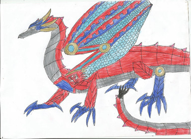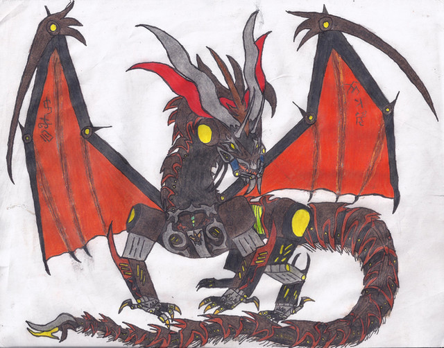 Weapons: Can breath fire and poisonous fumes from mouth,can fly at a rapid speed,uses claws to slash at enemies,can deploy Divebomb legs to use as extra arms from back,can stab with tail spear,can rip apart foes with his jaws.