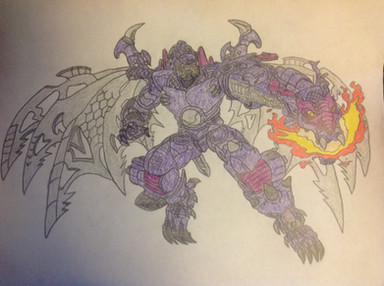 Bio: Upon joining Airachnid's army the Predacons were approached by Shockwave who offered them the power to combine into a monsterous gestalt. Discovering how he and his team can make massive destruction and results,Razorclaw agreed fully to this but only if he gets to decide what kind of design the gestalt can be. Shockwave honored his wishes as he set out to upgrade them with the old power to combine which is said to be lost to many generations until Shockwave and his fellow scientists before the war rediscovered the tech which both sides came to use. Razorclaw had the combined form to have the form of a dragon since it symbolizes their faction as predators and to honor the founder of the Predacon clan and be named Predaking. Upon being combined the gestalt