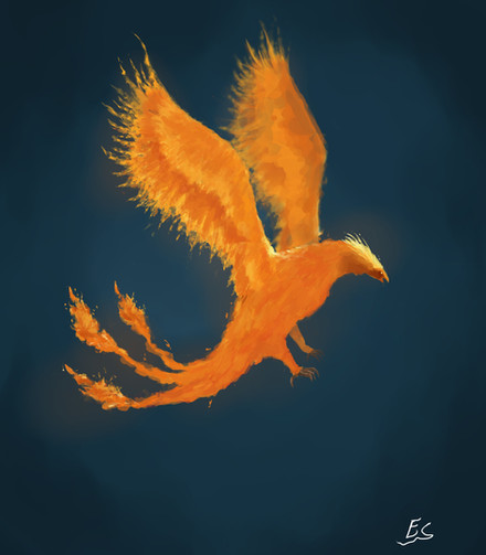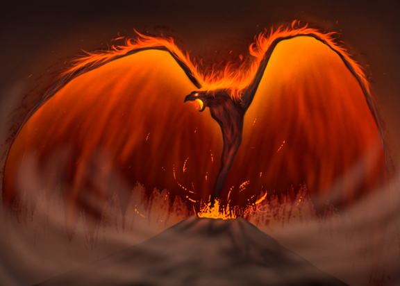 Well the detail on the Phoenix' head is great. The only thing I see that looks odd is the lava flow, but for a speed paint this is still great overall. Looking forward to seeing the final draft.