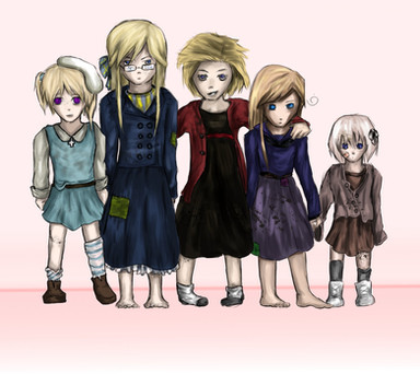 I doodled 'em in my Philo class and I just had to color it in PS. I just looove these five! ^__~(Not a very obvious Delightful Children From Down The Lane fan)