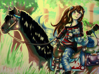 El caballo en la historia es Arthen y es de Rakan y en la realidad es el caballo de mi hermana y se llama Pancho xD a que es majo? ^^ es una cabra loca, cuando me decian "llevalo al cercado" era como ¬¬ es como llevar a una jirafa que va jugando detras tuyo cotilleando todo lo que hay a su alrededor haha (Dato, mi hermana me saca 18 años, no os creais que mis padres nos andan comprando caballos xDDD)