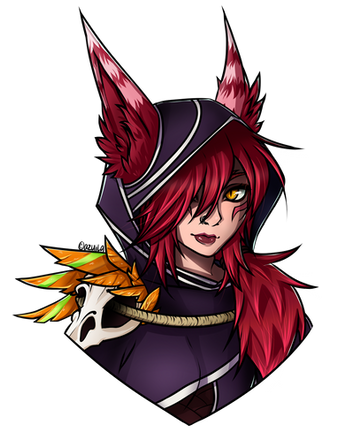 Both the version are great, but I prefer this version. The contrast between the warm colors, the brown hair and her white eyes works super well. Also the fave is a little bit more compressed here, and it fits well with the large mouth. After the goggles... well this version may miss the goggles ^^