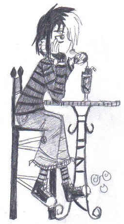 This was drawn as a companion piece. My friend Resa drew a sketchy kind of picture with Devi that is directly connected to this.It's based on a roleplay I will dubiously dub "JTHM II": it is at least several months after the end of the Squee series, in which we last see Johnny. Yes, his hair is very different, and I like it greatly.
