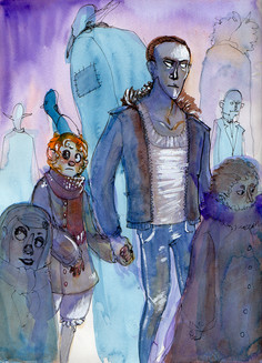 wonderful illustrative style. the looseness of the line work gives the works a type of energy. the color palette you used on this piece is appealing to me as well. the crinkles on the shirt add a nice textural quality to the work too.