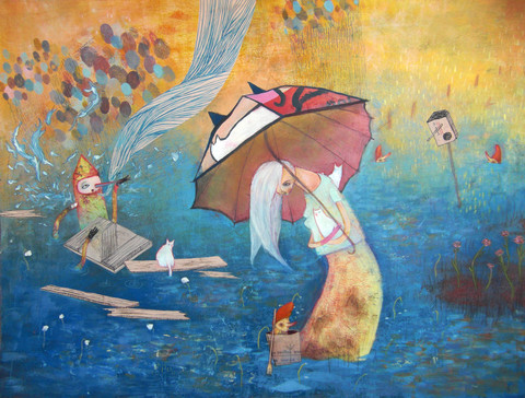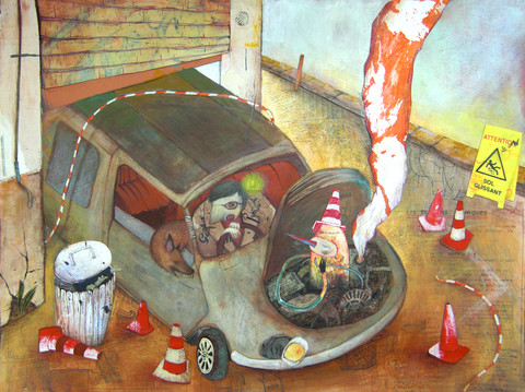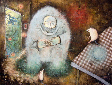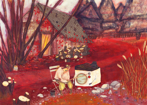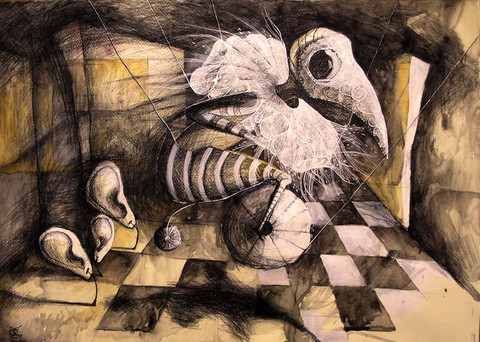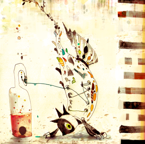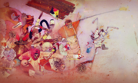 awesome! the depth of space created by the warpage on the lefthand side is stunning. the collage aspect is really creative too...reminds me of dave mckean's illustrations for neil gaiman's The Wolves in the Walls. multimedia ftw.