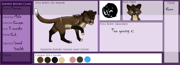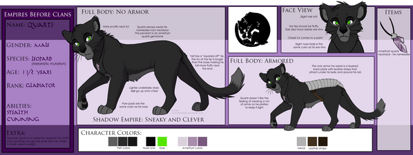 Bio: Aries is a young king cheetah cub who's Shadow Empire's newly named blacksmith apprentice. Just like the rank she's has chosen to pursue, she has a very feisty and fiery personality. This young cheetah is a natural born leader, a trend setter, and a lover of freedom. She is extremely loyal to her Empire and would die protecting those she cares about.