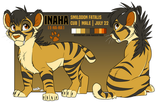 I didn't have enough time this stretch off work to get any major artwork done because I was too busy recovering from the eight straight days they put me through, but have a glorified Inaha doodle anyway!I think he'll be one of the next of my OCs to get a spiffy new re-design just because his past design feels so dated to me now, but idk if I'll go with this specific design or not. I love the face markings here so they'll probably stay, but all that neck fluff makes him just a little too fluffy for a smilodon cub imo. Also feat. an eye color change that may or may not stick, too. c: