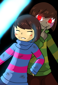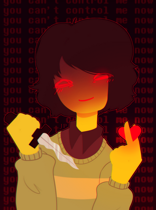 Don't worry Frisk. You maybe afraid of dying, of even pulling a punch, or even hurting anyone..... but that's why Chara's here. She's here to make sure no one harms you.... even the ones who can't fight back. So just sit back and relax as she does all the work.