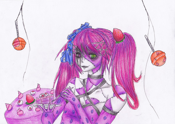 Cute but evil love the anime + the gothic/ Halloween look. Keep up the good work on all of your drawing their great. :3