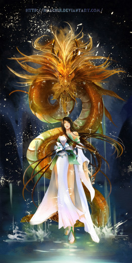 Really nice work! I love the overlay colors done on the Mist Dragon summon. Rydia looks really good as well. Nice shades of green used on her outfit, it contrasts very well with the deep blue used on the Mist Dragon.