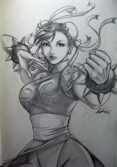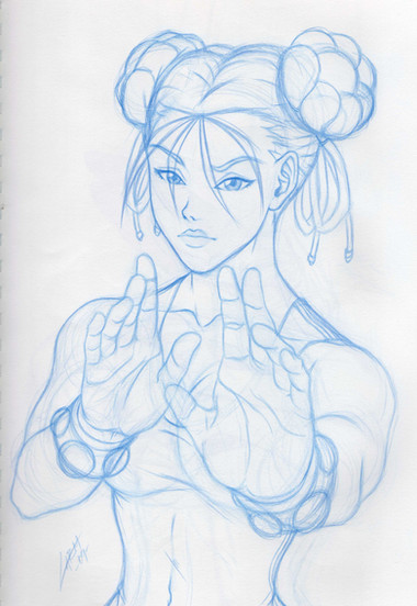 This is far from over but I really like how it looks so far. I know Chun-Li's colors are blue, but I choose this because I played with her that way.Btw this is a fanart of a wonderful piece made by so check out his page, he's one of the big artists around here. 👍