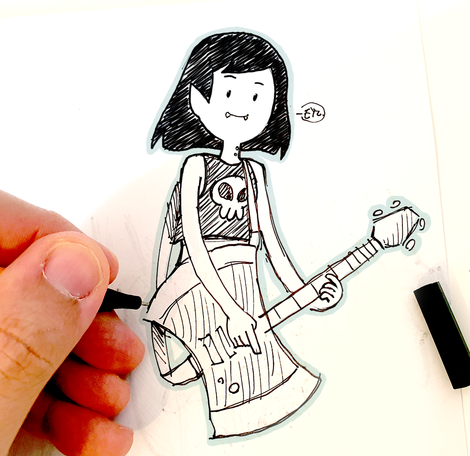 I will draw Marcy with his guitar, more like she looks in the cartoon