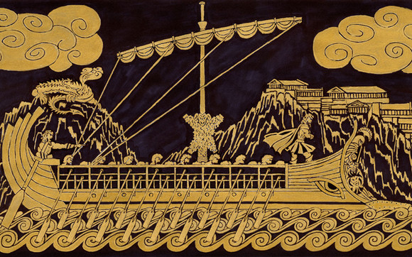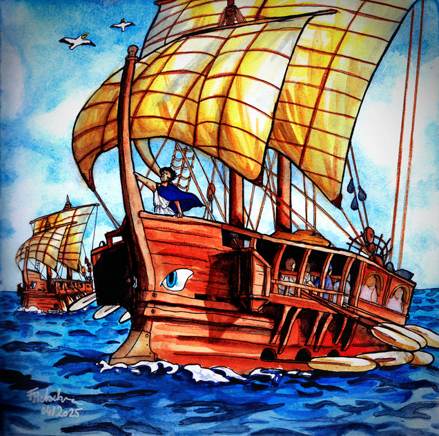 A concept about a market held on deck of a trireme.