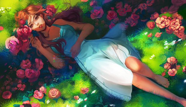 I really like how you've done her hair spread out on the ground and the flowers are so pretty! The lighting is really good too, well done!