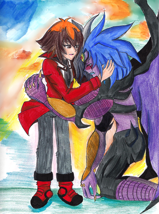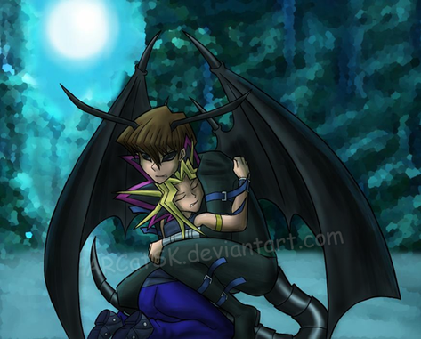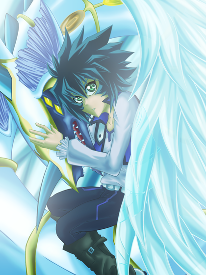 I did it! I draw a picture with Yusei and his crypto/ yami. Krypta is the dark side from Yusei and his protector with a sadistic character ^^° But he will never allow, than anyone will his "little angel" add something.