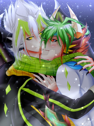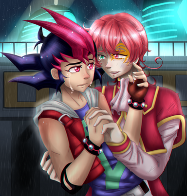 das ist ja total niedlich. Sieht so aus, als würde Krypta seinen Hikari beschützen, naja, gehört sich auch so, oder nicht? Ich mag die Pose der beiden sehr gern und auch den BG hast du gut hinbekommen. Die OL's sind sauber und schön gesetzt und der Nebel im BG macht das ganze noch viel realistischer. Die Striche in Haar und an der Kleidung ist Regen, ich hätte eher an Durchnässung gedacht. ^-^ Aber dann müssten sie ganz dunkel sein, weil sie durch sind. :hihi: Armer Yusei, der friert doch bestimmt oder? Also ich meine, der trägt keine Jacke und nichts, also müsste er doch frieren, deshalb schmiegt er sich bestimmt auch so an ihn, weil ihm sicher kalt ist. Denn Krypta hat ja ne Jacke. Hehe ^^ Die Schatten sind schön gesetzt und auch die Lichteffekte sehen sehr gut aus. Ich mag auch Krypta's rote Augen sehr gern. Hast du toll gemacht, wirklich niedlich. ♥
